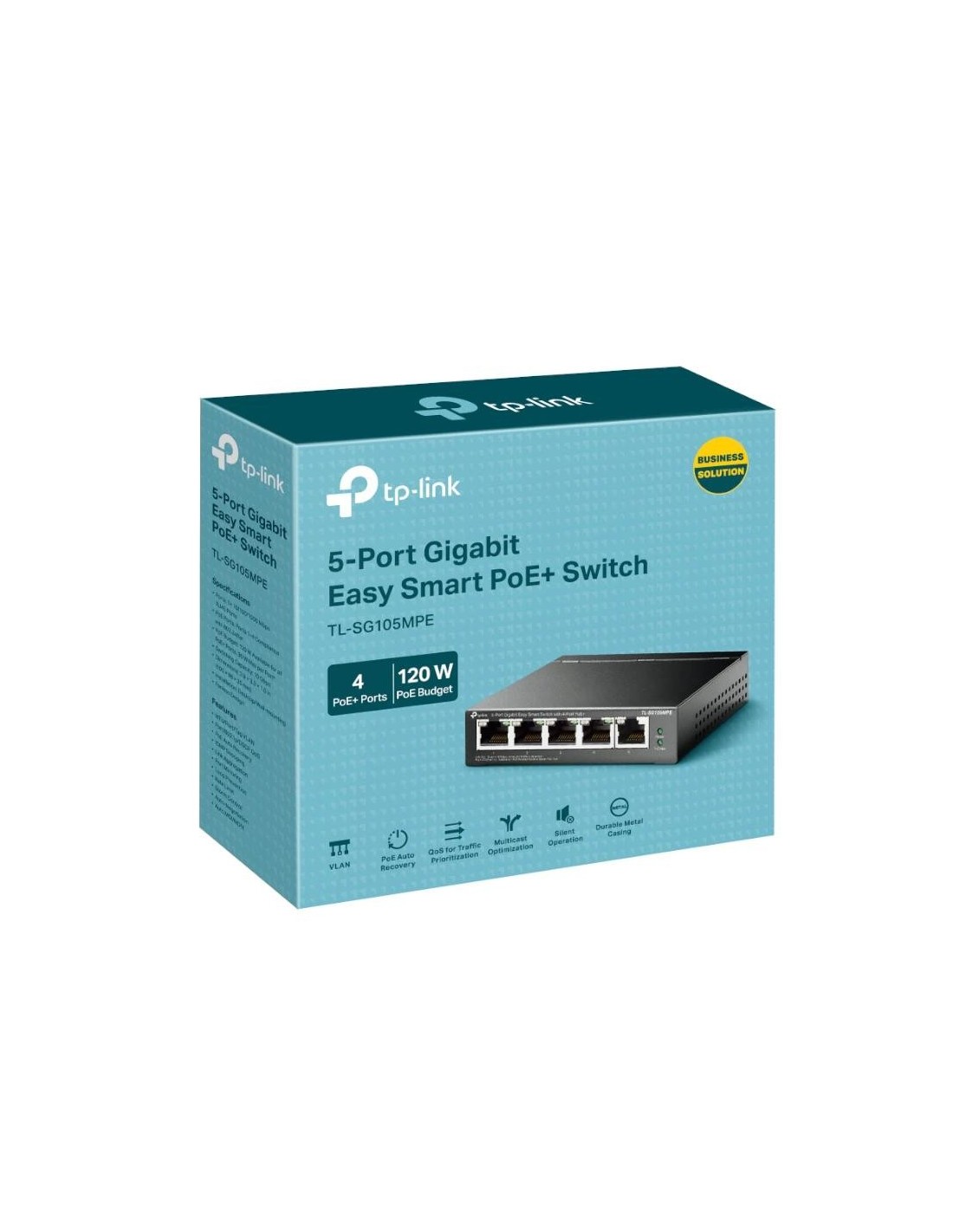 | Otras características | - Certificaciones: FCC, CE, RoHS - Dimensiones: 99.8 × 98 × 25 mm - Montaje: Montaje en Rack - Consumo de Potencia Máximo: 4,34 W (220 V/50 Hz sin PD conectado) || 137,01 W (110 V/50 Hz con PD de 120 W conectado) - Max Heat Dissipation: 14,8 BTU/h (sin PD conectado) || 467,17 BTU/h (con PD de 120 W conectado) - Requisitos del sistema: Microsoft® Windows® para ejecutar la utilidad Contenido - TL-SG105MPE - Adaptador de corriente - Guía de instalación - Patas de goma |