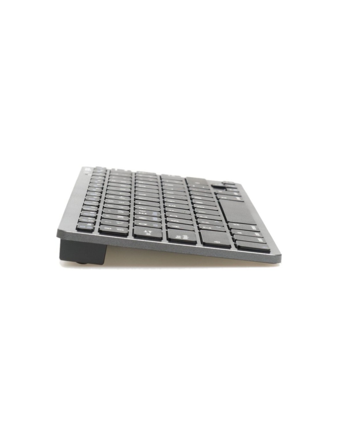| Características | - Teclado Bluetooth 3.0 con 2 canales independientes - Permite alternar entre dos dispositivos Bluetooth - 78 teclas (teclado 60%) - Ultra-silencioso - Diseño delgado - Agradable al tacto - Soporta Windows, macOS, Android - 2 pilas alcalinas AAA 1,5V (no incluidas) - Colores: teclas negras y base gris |