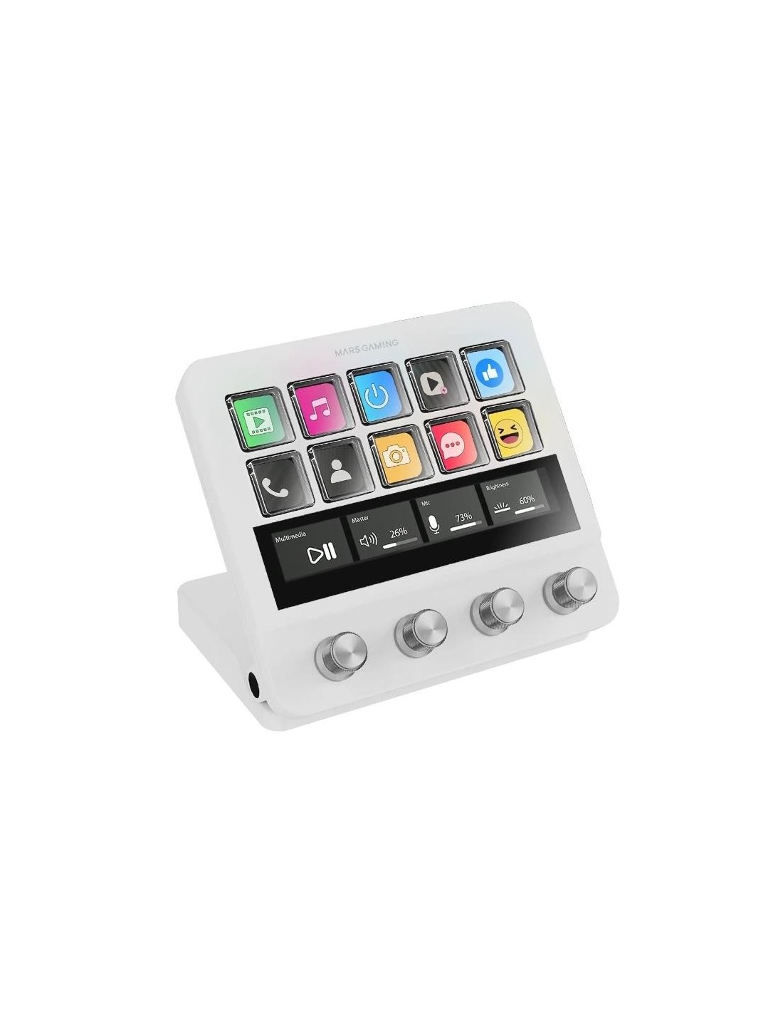 | Características | - 10 teclas LCD y 4 diales personalizables - Pantalla táctil extendida animada - Hub USB (2× USB 3.0 + 1× USB-C) y base ajustable - Corriente: 0.6A - Voltaje: 5V - Compatibilidad MacOS Windows * Compatibilidad MacOS 10.15 o superior - Tecnología: 4 x ruedas de control 10 x teclas LCD Pantalla táctil de imágenes animadas - Longitud cable: 150 cm - Software de control Dimensiones y peso - 137 x 124 x 50 mm - 387 g |