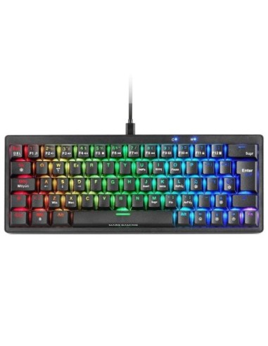 | Características | - Diseño: 60% mini - Material teclado: ABS - Color: Blanco o Negro - Iluminación: RGB Chroma 16.8 million colours with backlit keys - Tecnología: Mecánico - Tipo de switch: SKN Amarillo/Azul/Marrón - Longitud del cable: 150cm - Conectores: USB 2.0 - Programable: Hardware / Software - Frecuencia de refresco: 1000Hz - Anti-ghosting: Si (antighosting total) - Software: Sí (Windows) - Compatibilidad: Windows, *Linux, *Mac, PS4, PS5, XBOX ONE, XBOX SERIES X-S, Nintendo Switch *(Algunas funciones pueden no funcionar debido a limitaciones del sistema operativo.) - Voltaje: DC 5V - Corriente: 300mA - Punto de actuación: Amarillo: 2mm | Azul: 2mm | Marrón: 2mm - Fuerza de actuación: Amarillo: 50g | Azul: 60g | Marrón: 55g - Tiempo de uso: 50 millones - Tipo de cable: Recubrimiento de goma - Teclas: Doble inyección Dimensiones y peso - 480 g - 300 x 114 x 42 mm |