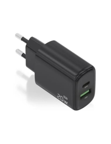 | Características | - Cargador GaN de 20W - 1 puerto USB-C con Power Delivery 3.0 - 1 puerto USB-A con Quick Charge 3.0 - Compatible con dispositivos USB-C y USB-A - Tecnología GaN para mayor eficiencia energética - Diseño compacto y ligero - Protección contra sobrecarga y cortocircuito - Color negro Dimensiones y peso - 42 × 26 × 63 mm - 70 g |