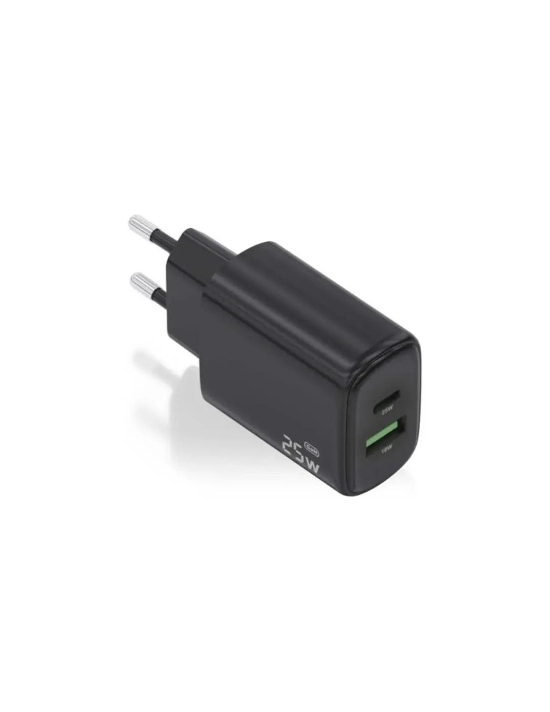 | Características | - Cargador GaN de 25W - 1 puerto USB-C con Power Delivery 3.0 - 1 puerto USB-A con Quick Charge 3.0 - Compatible con dispositivos USB-C y USB-A - Tecnología GaN para mayor eficiencia energética - Diseño compacto y ligero - Protección contra sobrecarga y cortocircuito - Color negro Dimensiones y peso - 42 × 26 × 63 mm - 70 g |