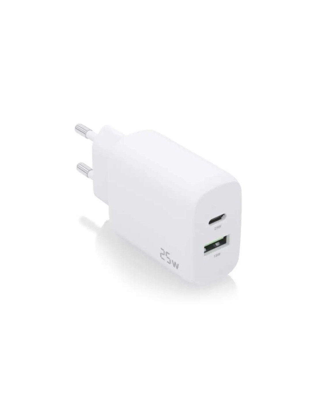 | Características | - Cargador compacto de 25W con 2 puertos: 1xUSB-C PD3.0 y 1xUSB-A QC3.0 - Entrada: 100–240V~50/60Hz 0.5A - Salida USB-C: 5V/3A, 9V/2.77A, 12V/2.08A, 15V/1.67A, 20V/1.25A - Salida USB-A: 5V/3A, 9V/2A, 12V/1.5A - Tecnología AI incorporada para detectar el protocolo del dispositivo y optimizar la carga - Múltiples protecciones: sobrecarga, cortocircuito, sobrecalentamiento - Diseño elegante y moderno en color blanco - Compatible con una amplia gama de dispositivos USB-C y USB-A Dimensiones y peso - 43 × 26 × 49 mm - 55 g |