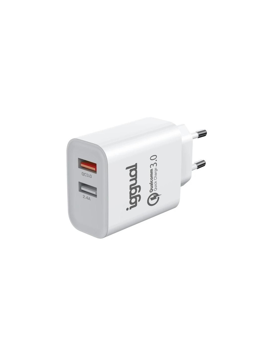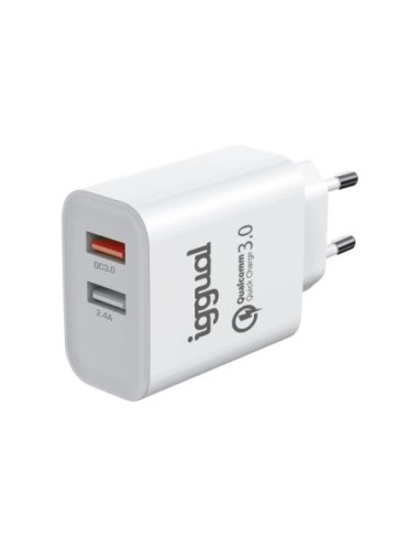 Carga hasta dos dispositivos móviles de manera simultánea con el cargador rápido de pared USB QC3.0 de 30W de iggual.