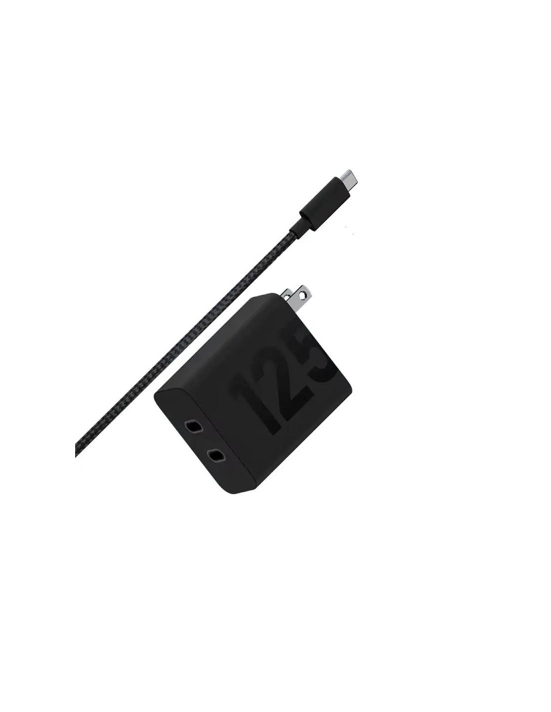 | Características | - Tipo de producto: Cargador de pared USB-C 125W - Puertos: 2x USB-C - Potencia máxima: 125W (120W en puerto dual) - Entrada: 100V - 240V - Corriente: 6.5A - Tecnología: GaN, TurboPower™ Sense, TurboPower™ Shield - Longitud del cable: 2 metros (USB-C a USB-C trenzado) - Color: Negro mate - Dimensiones: 64 x 56 x 29 mm - Peso: 175 g - Incluye: Cargador y cable USB-C a USB-C de 2 metros |