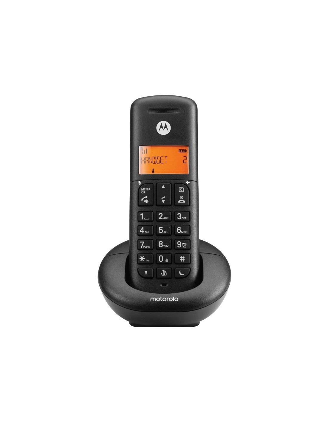 El Motorola E2, un terminal elegante y de fácil uso. Tiene una pantalla blanca y negra que cuando se enciende brilla de color ambar, incorpora todas las características principales de los teléfonos inalámbricos modernos. Ofrece bloqueo de llamadas, hasta 10 números específicos. También dispone del modo "no molestar" para cuando no se desea recibir llamadas ni mensajes ni recibir alerta ni por timbre ni por luz.
