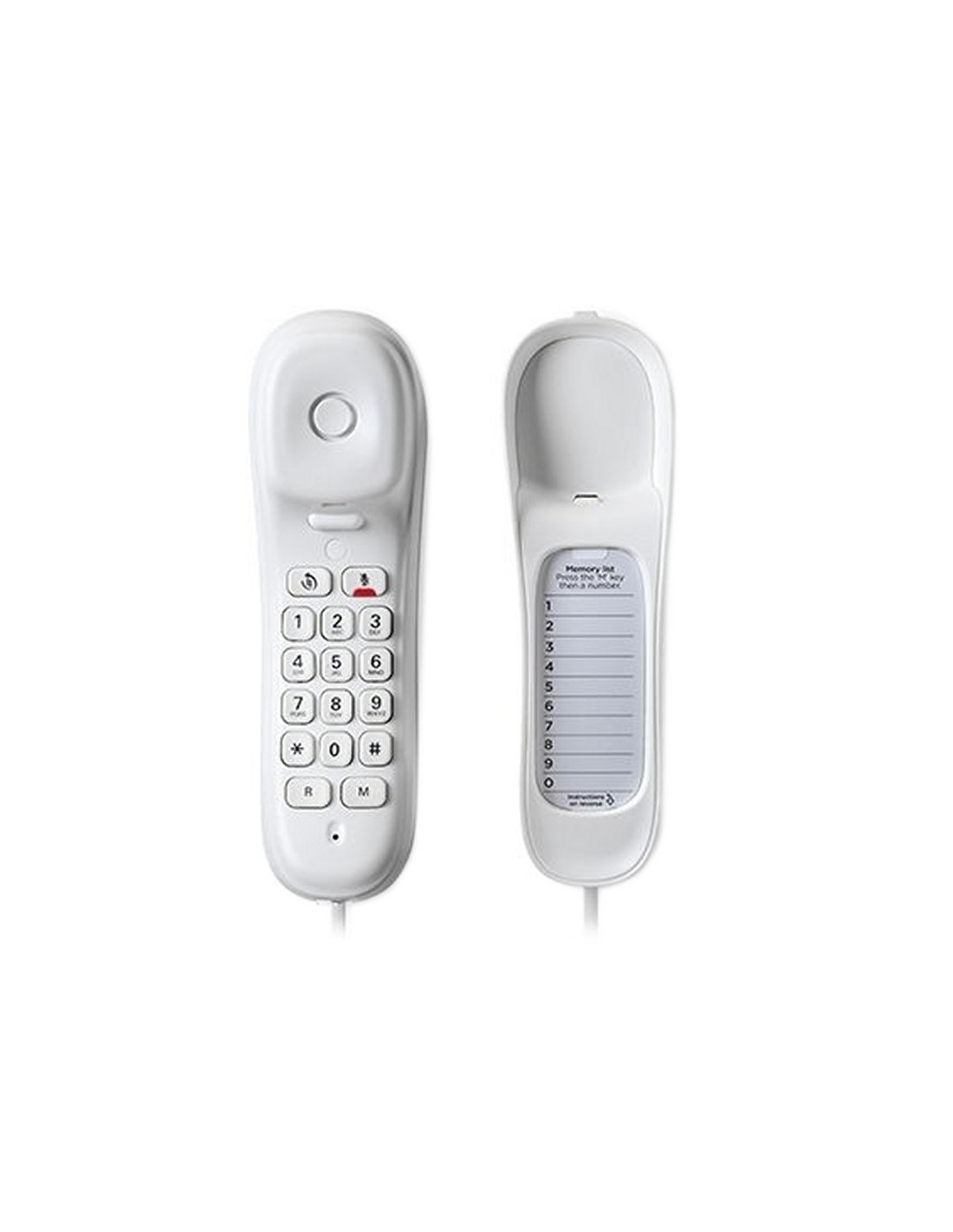 | Características | - 10 teclas de memoria (marcación 2 pasos) - Indicador visual de llamada - Control de volumen del timbre (Alto/Bajo/Apagado) - Modo silencio con indicador LED - Marcación por tonos - Rellamada al último número - Montaje en pared |